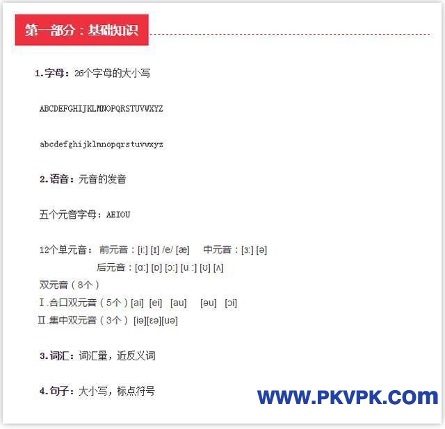 英语是伴随孩子们考试一生的重要科目,从幼儿园到大学,时时刻刻都在学习考试。如果说幼儿园只是牙牙学语,跟着念几句,那么小学就要真正重视并打好基础了。英语毕竟不是我们的母语,如果我们在小学还没有打好基础,那么初中再去学习地话可能会更加辛苦。 今天,特地为大家总结了小学学习英语需要掌握的一些基础知识点,这些知识点可谓学习英语的基础,可以一直用到初中!