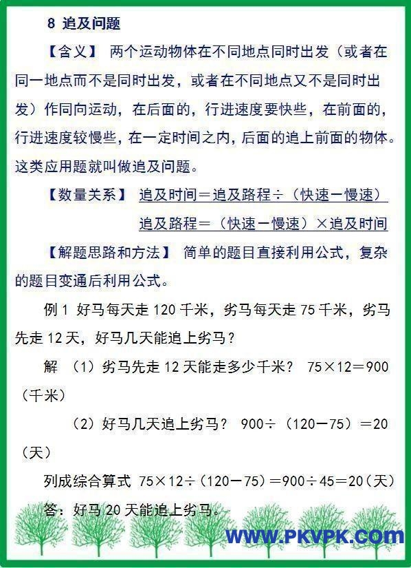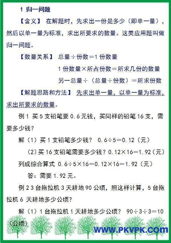 小学是学习数学的起始阶段,也是重点阶段,只有在小学学好数学,那么孩子到了初高中学习数学才会更加轻松。因此,对于学生来说,小学六年学好数学有助于为今后的数学学习创造良好的条件。 但是,由于小学时期的孩子逻辑思维弱,平日学习的过程中也不太注重总结归纳,所以,很多孩子遇到应用题不知道如何解答,这给学习上带来了比较大的问题,更要注重加强。 那么,为了帮助孩子提升自身思维能力,进而提高数学成绩,下面,就将小学阶段重要的部分应用题分享给大家,希望孩子们趁着暑假,多做一做,对孩子学习数学帮助很大。 |